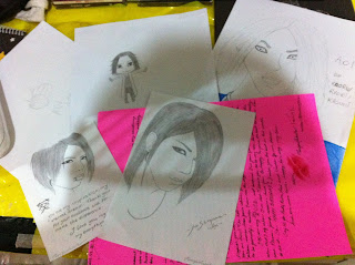 Esses foram alguns presentinhos (cartinhas/desenhos) que nossos membros fizeram durante o encontro para o Aoi. Ficaram lindos, não?