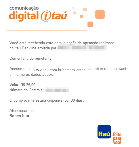 Ou se não, mandar o e-mail automático do banco na hora da transferência.